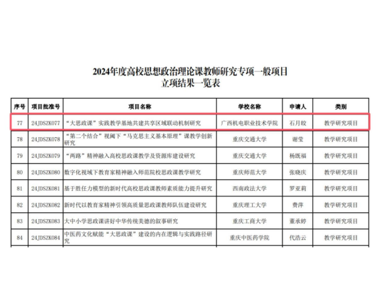 taptap官网始终秉持“以科研促教学、以教学带科研,教学和科研同频共振”的理念,将科研及教学改革工作置于重要位置,多措并举鼓励教师积极申报科研,将科研成果推广运用于教学改革提升中,taptap官网思政课教师成功立项教育部人文社科课题、广西高校思政课建设创新示范项目、广西职业教育教改课题等重大项目50余项,出版教材和专著18部,在《学术论坛》《广西社会科学》《广西日报》(理论版)等党报期刊发表高质量论文和理论文章近300篇。2012年以来,由taptap官网思政课教师主持完成教改成果连续5届荣获自治区级教学成果奖6项。