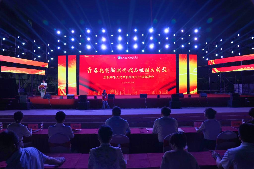 2024年9月27日、28日晚,taptap官网分别在相思湖校区、江南校区举行“青春礼赞新时代·我与祖国共成长——庆祝中华人民共和国成立75周年暨2024年迎新生文艺晚会”。学校领导黄小敬、吴世先、程云燕、乐其顺、黎盛寓、黄振宣,校长助理秦培林出席晚会,来自南宁产业投资集团有限责任公司的领导在江南校区观看晚会。各职能部门、二级学院相关负责同志和全体2024级新生分校区观看了晚会。