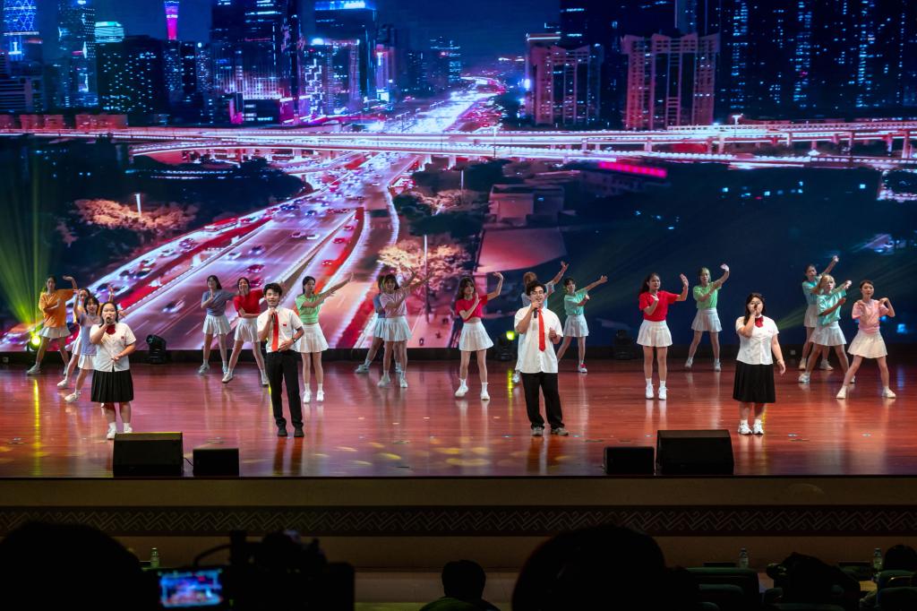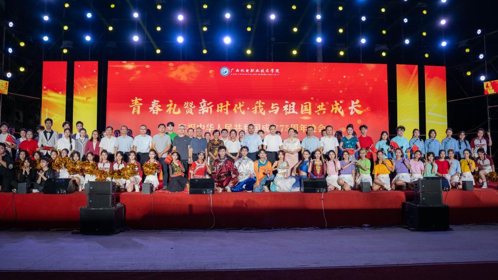 晚会以“青春礼赞新时代·我与祖国共成长”为主题,在民族大团结舞蹈中正式拉开帷幕。用“青春告白祖国”“匠心躬耕教坛”“逐梦扬帆起航”三个篇章,串联起爱党爱国教育、强工兴工教育、爱校荣校教育的思想主线,通过师生合唱、歌舞表演、原创情景剧等丰富多样的形式,融入校史校情、办学成果、学校发展等内容,回顾了新中国七十五载的辉煌历程,呈现了66年来广西机电薪火相传“为党育人,为国育才”的奋斗历程,展现了新一代机电青年学子的青春风采与爱国情怀,营造了全体师生向祖国、学校和青春“大告白”的热烈氛围和动人场景,呈现了一场振奋人心、激扬斗志的思政大课。