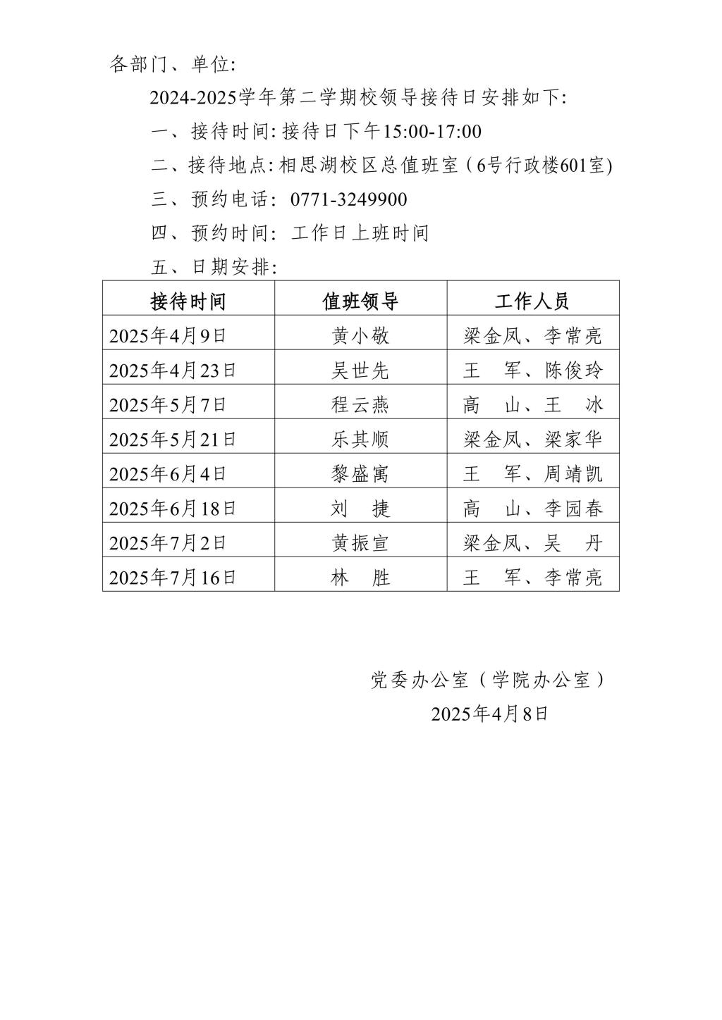 关于2024-2025学年第二学期校领导接待日安排的通知