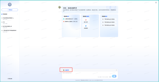 在浏览器中打开学校一网通办服务门户网址:https://nportal.gxcme.edu.cn/default/index.html#/点击桌面的AI小助手,进入AI问答界面,在输入框处找到AI辅导员并点击进入。