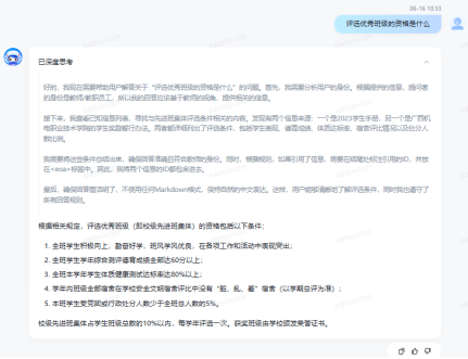 将想要了解的学校事务发送给AI即可,例如:评选奖学金有哪些要求?