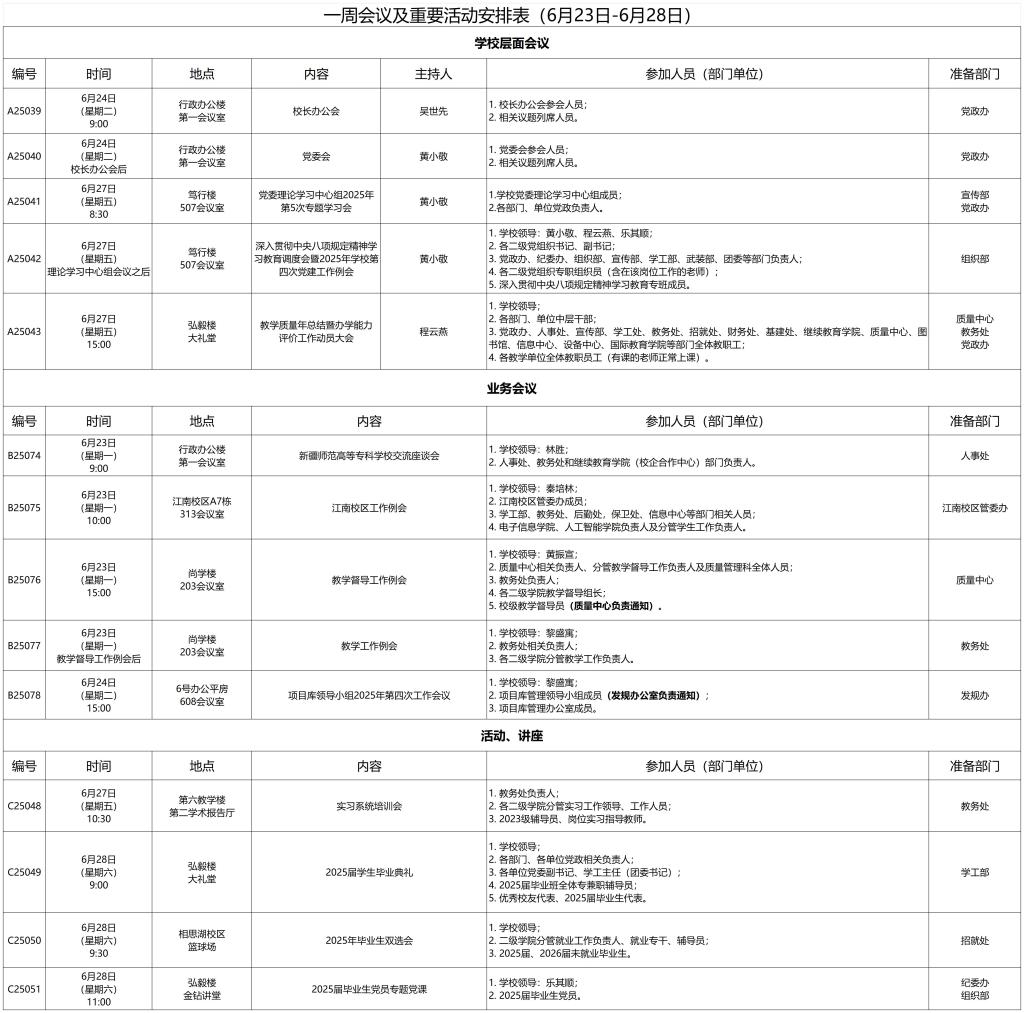 一周会议及重要活动安排表(6月23日-6月28日)
