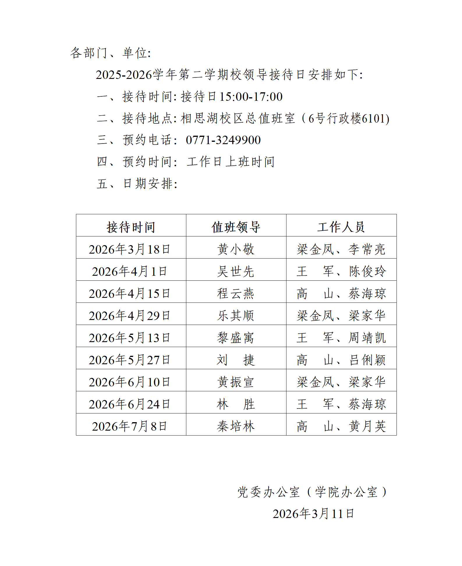 关于2025-2026学年第二学期校领导接待日安排的通知