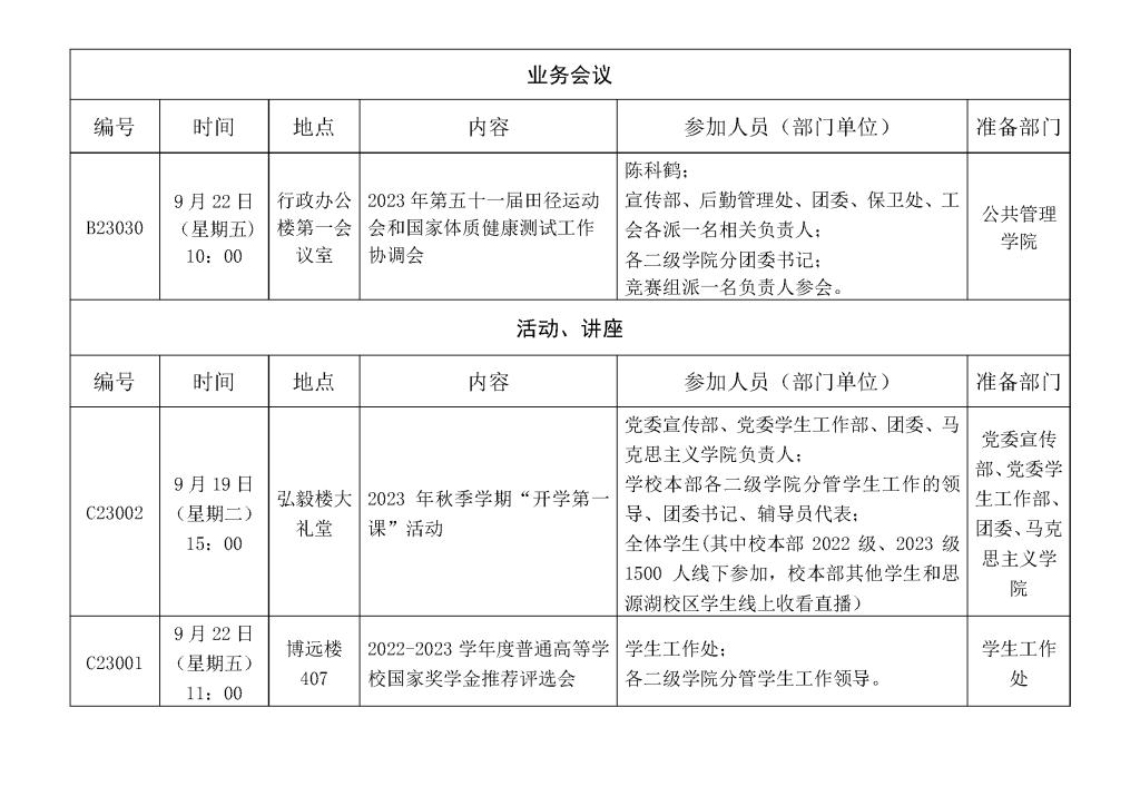 一周会议及重要活动安排表(9月18日— 9月24日)