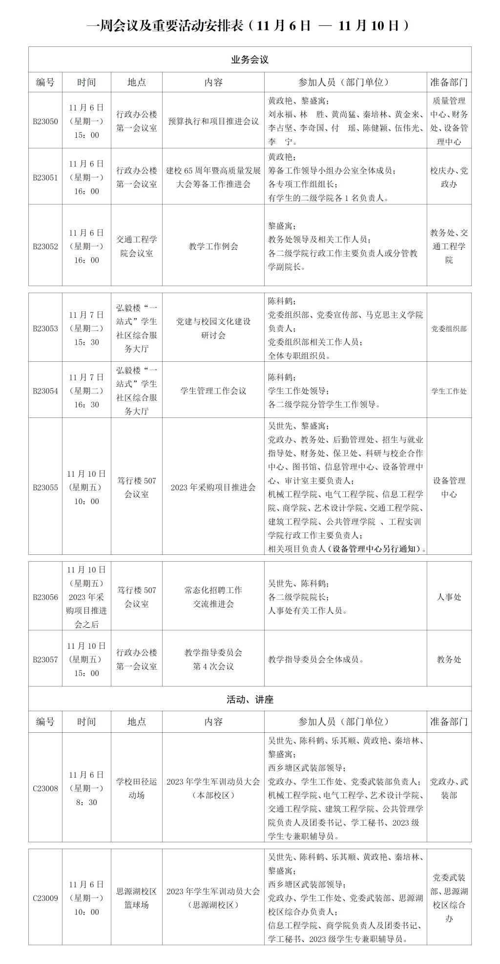 一周会议及重要活动安排表(11月6日 — 11月10日)