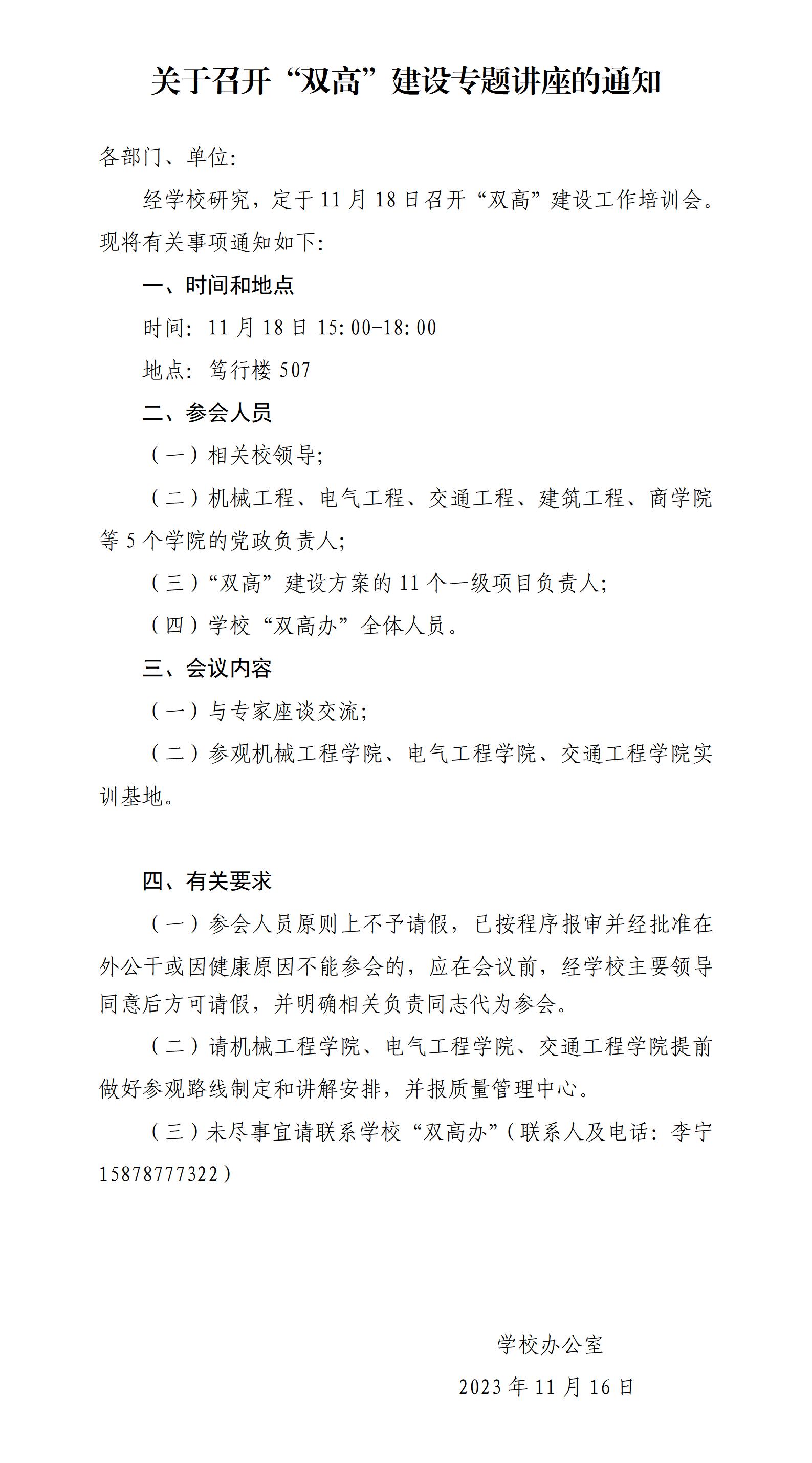 关于召开“双高”建设专题讲座的通知