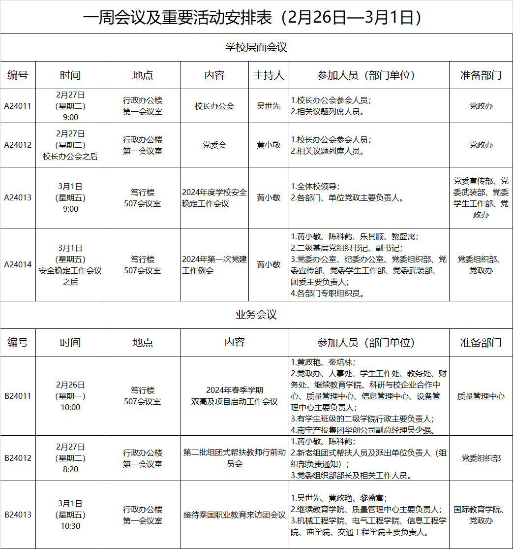 一周会议及重要活动安排表(2月26日—3月1日)