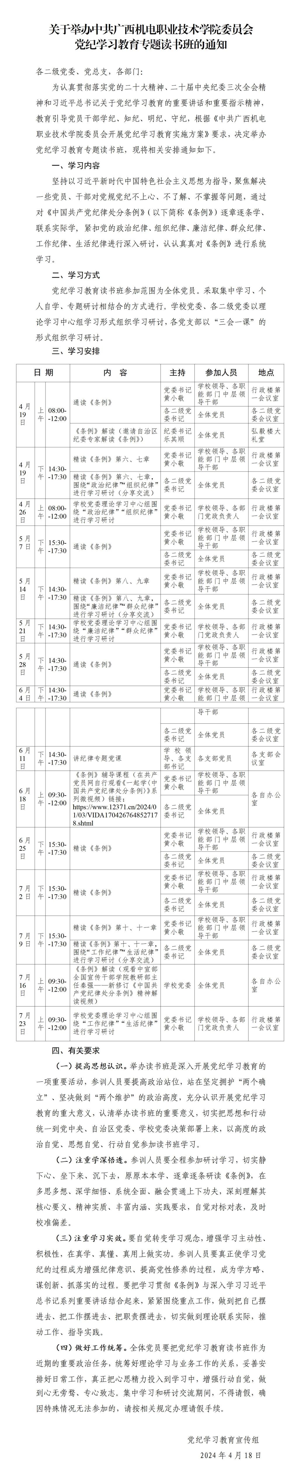 关于举办中共taptap点点官网委员会党纪学习教育读书班的通知