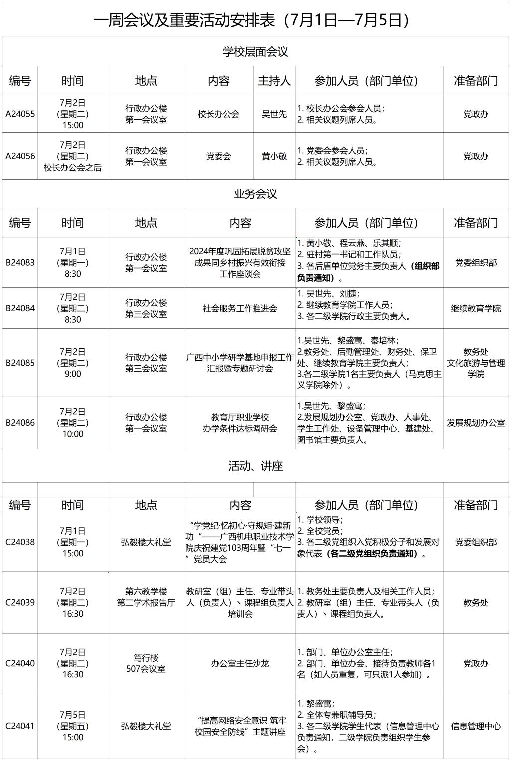 一周会议及重要活动安排表(7月1日—7月5日)
