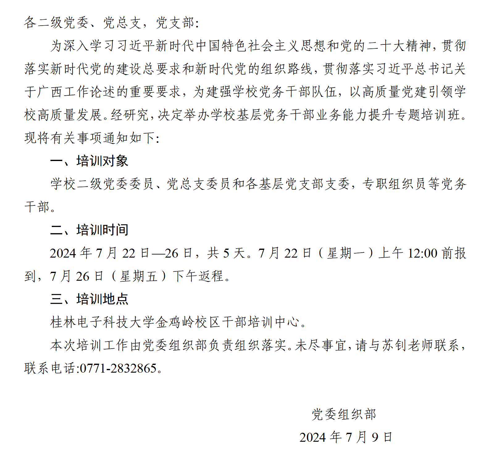 关于举办2024年taptap点点官网党务干部业务能力提升专题培训班的通知