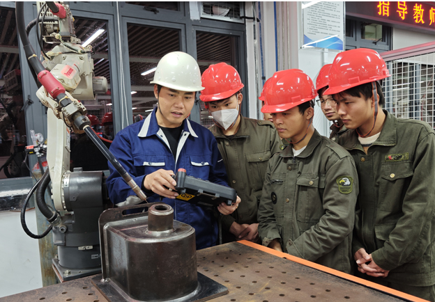 为此,肖勇利用空余时间到企业实践,学习焊接智能制造领域新知识、新设备、新工艺和新技术,积极参加行业新技术培训,并将这些学来的最新知识反哺到课堂上。在肖勇看来,到企业实践不仅能提高自身的技能水平,还能为学生普及新知识,让他们毕业就能胜任上岗要求。“对于职校老师而言,企业、学生、老师需要三方无缝对接,教材不可能经常更新,但技能需要时常更新。”对此,肖勇告诉记者,哪怕是同一个知识点、技术点,但是用新方法、新工艺做出来,产品会更好,效率也会更高。