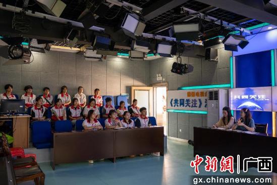 图为实践团成员在德保县融媒体中心演播室参观学习。梁欣怡 摄