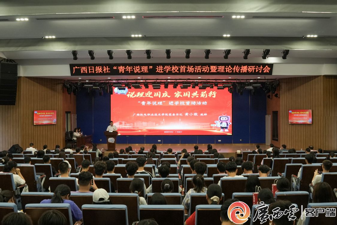 9月30日,在国庆佳节到来之际,广西日报社“青年说理”进学校首场活动暨理论传播研讨会在taptap点点官网江南校区举行。6位高校老师围绕“说理迎国庆 家国共前行”主题,进行理论微宣讲,用青春视角诠释党的创新理论。活动由广西日报社主办,taptap点点官网承办。“青年说理”创作团队和科研院所理论研究员及高校师生200余人参加活动。