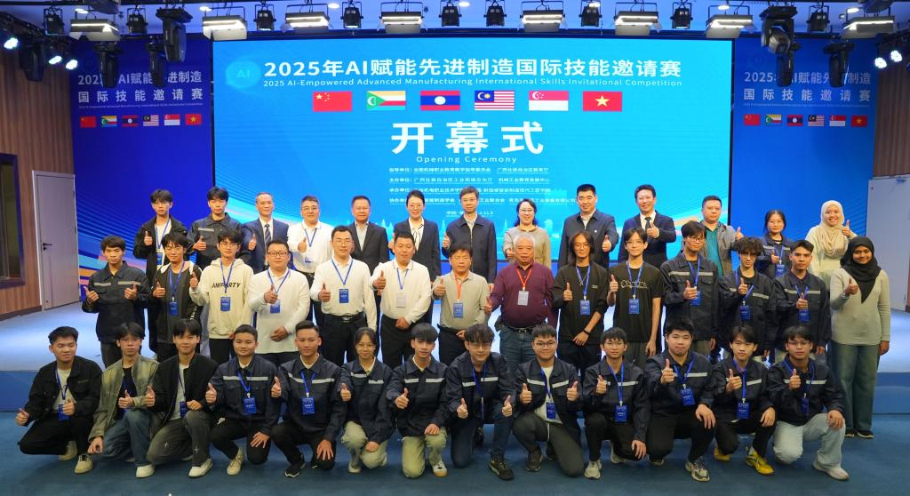 大赛以“AI赋能制造,技能联通世界”为主题,聚焦工业机器视觉系统安装调试、故障诊断、参数优化等核心技能,汇聚了来自越南、马来西亚、新加坡、老挝、科摩罗等6个国家的青年工匠同台竞技,旨在探索一条“产业需求牵引、赛事标准引领、产教融合育人”的先进制造工匠培养新路径,为广西抢抓人工智能时代机遇按下“快进键”,更为东盟各国共享人工智能发展成果搭建“新平台”。