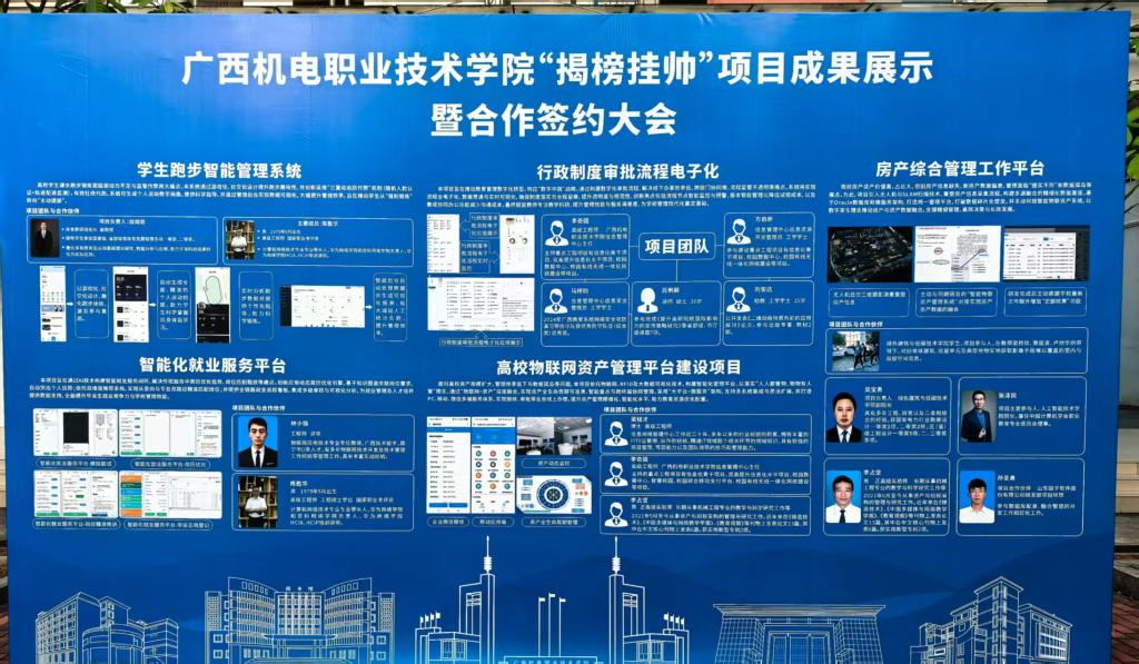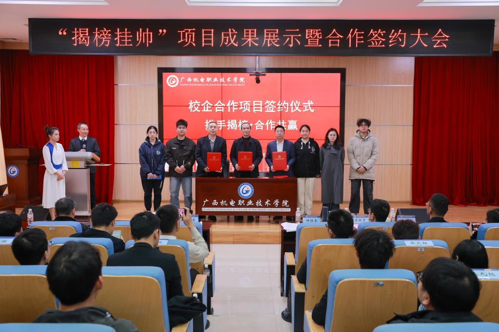 在签约环节,9组校企代表依次上台签署合作协议。签约项目聚焦企业实际技术瓶颈,覆盖智能制造、信息技术、机械装备等区域重点产业领域,与广西产业升级需求高度契合。这标志着校企“按需研发、协同攻关”迈入实质性阶段,也意味着学校科研力量正从服务校园走向赋能产业一线,实现了重要跨越。