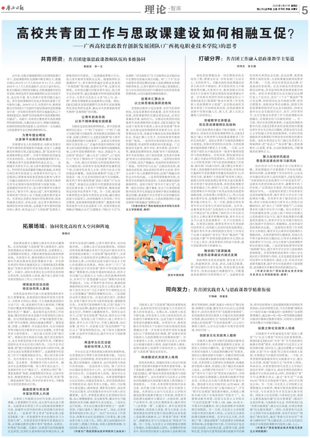 打破分界:共青团工作融入思政课教学主渠道■邱伟炎 张文婧 《 广西日报 》( 2025年02月27日第 005 版) |
