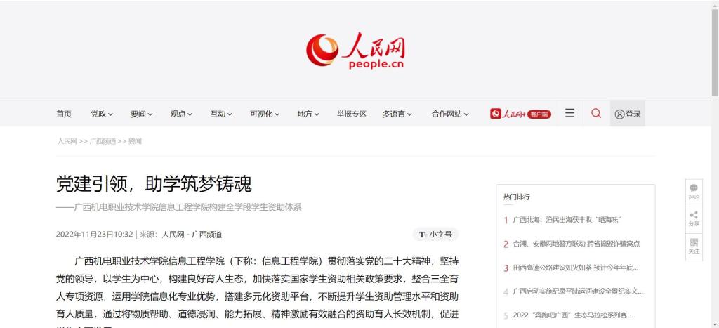 11月23日,人民网以《党建引领,助学筑梦铸魂》为题报道了taptap官网信息工程学院构建全学段学生资助体系,全文如下: