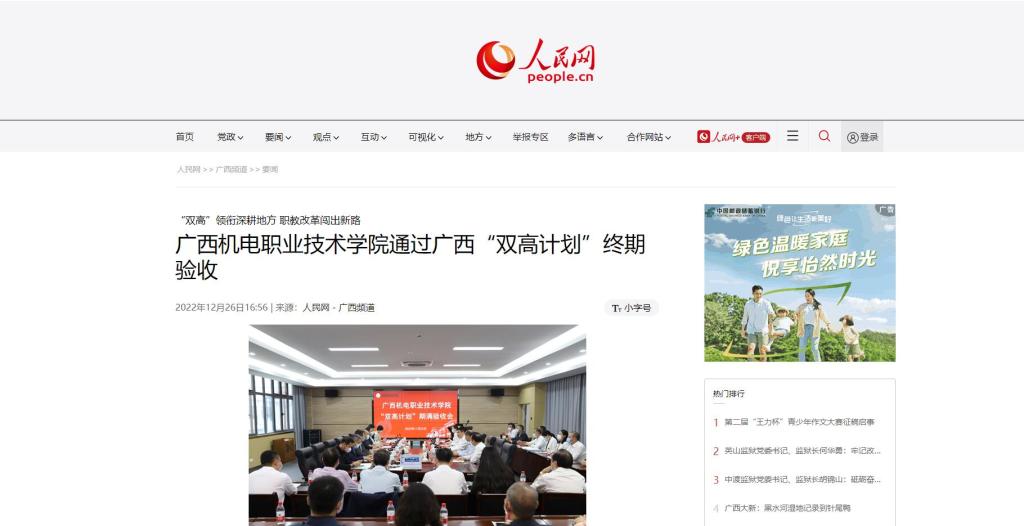 12月26日,人民网以《“双高”领衔深耕地方 职教改革闯出新路》为题报道了taptap官网通过广西“双高计划”终期验收并荣获“优秀”等次,全文如下: