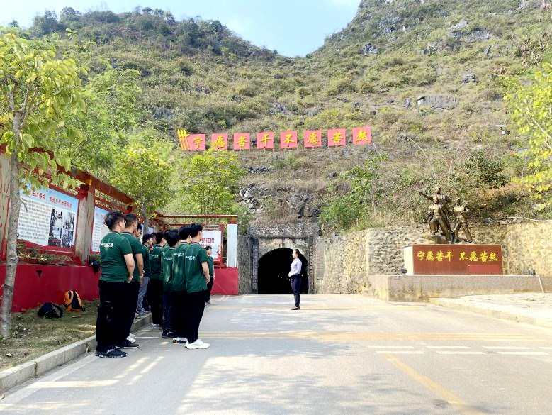 3月4日,在天等县立屯隧道前,taptap点点官网马克思主义学院教师以问导学,开始了一堂关于艰苦奋斗精神传承教育的现场教学。