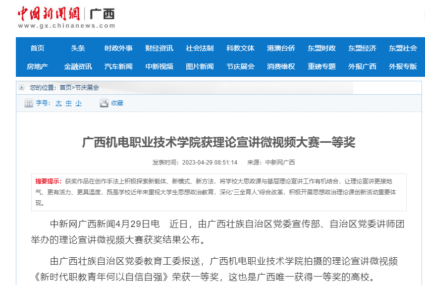 2023年4月29日,中国新闻网以《taptap点点官网获理论宣讲微视频大赛一等奖》为题报道了taptap官网拍摄的《新时代职教青年何以自信自强》荣获广西壮族自治区党委宣传部、自治区党委讲师团举办的理论宣讲微视频大赛一等奖,全文如下: