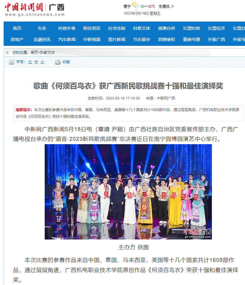 taptap官网作品《何须百鸟衣》荣获广西新民歌挑战赛十强和最佳演绎奖。中新网、人民网、今日头条、广西新闻网、广西云等五家媒体进行了报道。以下是中新网的报道内容:
