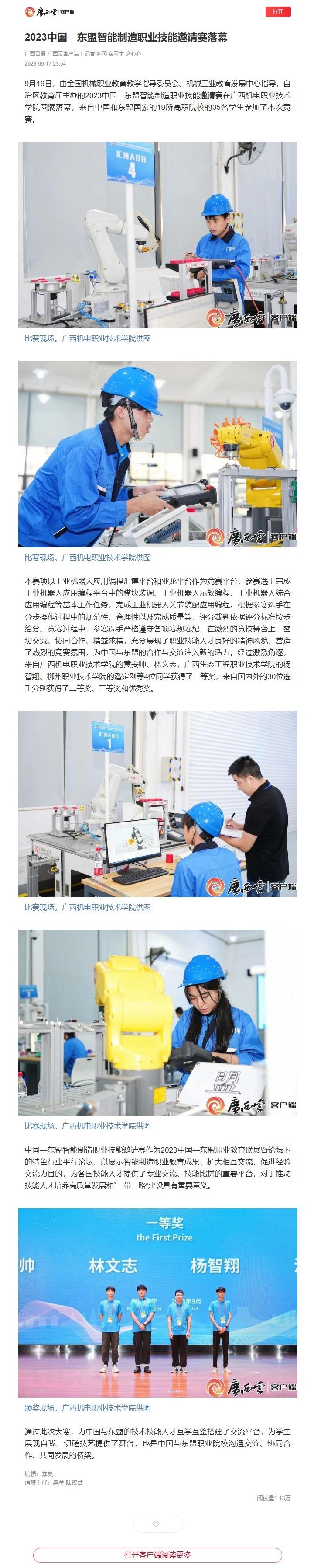 广西日报-广西云客户端:2023中国—东盟智能制造职业技能邀请赛落幕