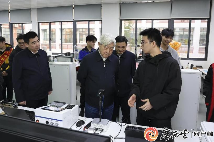 报告会结束后,戚发轫院士先后到学校交通工程学院、电气工程学院、机械工程学院,参观了汽车整车实训中心、创新实训中心、智能焊接实训中心等实训场所,实地了解学校在校企合作、产教融合等方面的创新成果,并与荣获全国技术能手、全国职业技能大赛一等奖、“广西五一劳动奖章”以及“全国青年文明号”等荣誉的师生代表亲切交谈,勉励他们矢志不移地走技能成才和技能报国之路。