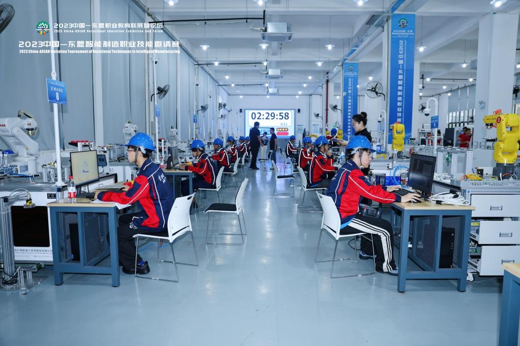 9月16日上午,2023年中国—东盟智能制造职业技能邀请赛邀请赛第一场在taptap官网明理楼一楼拉开帷幕。本赛项的竞赛平台为工业机器人应用编程汇博平台和亚龙平台。