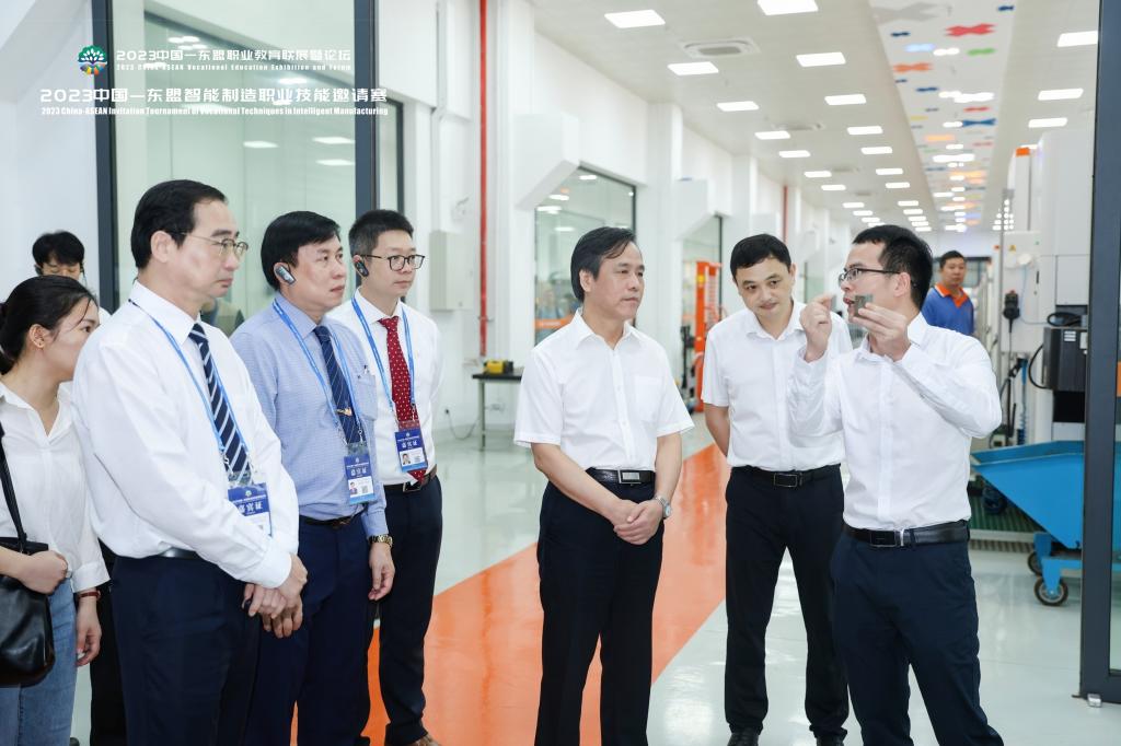 9月16日上午,出席2023 中国—东盟智能制造职业技能邀请赛开幕式的嘉宾参观taptap官网教育部-瑞士GF智能制造创新实践基地。