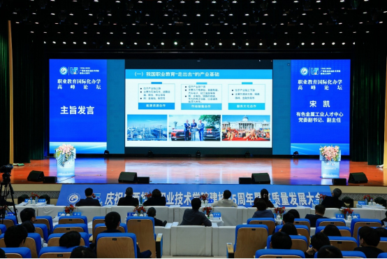 宋凯通过视频与会场连线,以《教随产出 产教同行 打造职教对外开放高地》为主题,阐述了我国以国际人文交流、国际合作项目、国际办学项目、来华留学项目、职业教育研究项目等职业教育“走出去”的基本模式,介绍了有色金属行业职业教育“走出去”的探索实践,指出职业教育“走出去”对我国构建新发展格局、奠定国际社会大众对华友好总基调、提升中国技术话语体系等方面的重大意义,并对广西职业教育“走出去”提出了发展建议。