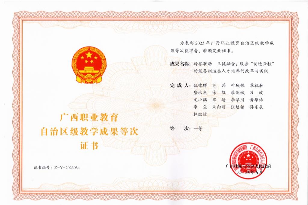 专业建设方面,教改项目《跨界联动三链融合:服务“制造兴桂”的装备制造类人才培养的改革与实践》荣获广西职业教育自治区级教学成果一等奖;2项自治区教学资源库建设项目顺利通过验收,1项获批立项;先进装备制造虚拟仿真实训基地以良好成绩通过广西教育厅验收;数控技术、电气自动化专业获批为广西职业教育发展研究基地;机电一体化技术专业入选广西现代职业教育发展示范项目“校企合作专业建设和课程开发试点”;《1+X多轴数控编程及加工》获评自治区级课程思政示范课程;建设自治区级职业教育在线精品课程1门,认定为面向东盟国际化职业教育资源课程1门。这些成果的取得,为学院下一步推进“五金”建设打下坚实基础。