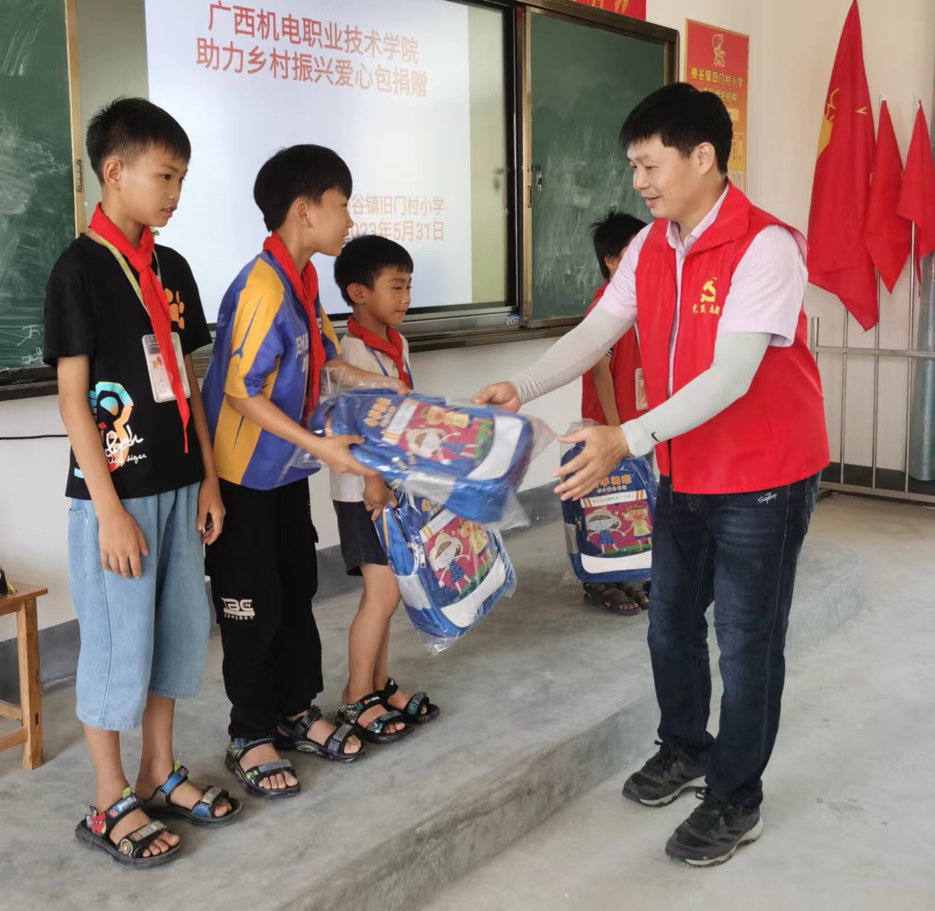 驻村以来,江健向后盾单位募集帮扶资金,为特别困难的脱贫户(监测户)赠送床铺被褥、学生课桌书包,为五保户硬化房间地面,为旧门村委灾后重建购置办公用品,组织开展灾后“家电义务维修”,春节期间在旧门村委组织开展“义写春联送温暖”活动,在2024年儿童节到来之际,组织驻村工作队员和村“两委”干部到旧门村小学开展“庆六一,悦读阅美”读书学习活动等,深受学校师生一致好评。