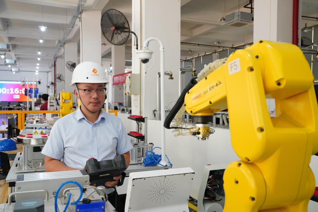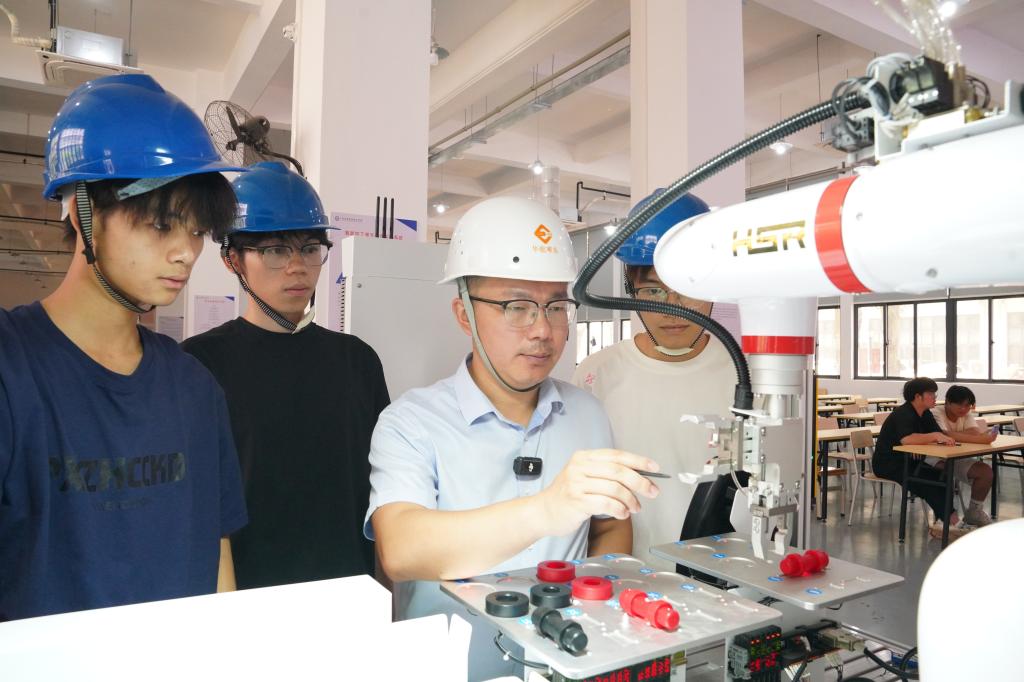 从教多年,熊治文如同一位耐心的匠人,手把手将一名又一名工业机器人“小白”培养成能独立设计产线蓝图、玩转编程代码、调试精密设备的技术“达人”。