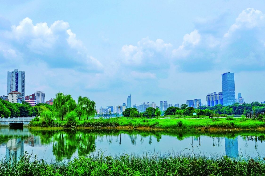 南宁南湖公园水清草绿,与城市高楼交相辉映。记者 尹世斌 摄(广西新闻网-南国早报)
