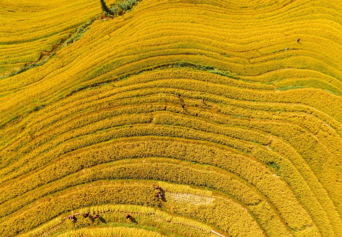 桂林龙胜梯田正值丰收季。记者 游拥军 通讯员 潘志祥 潘勇干 摄