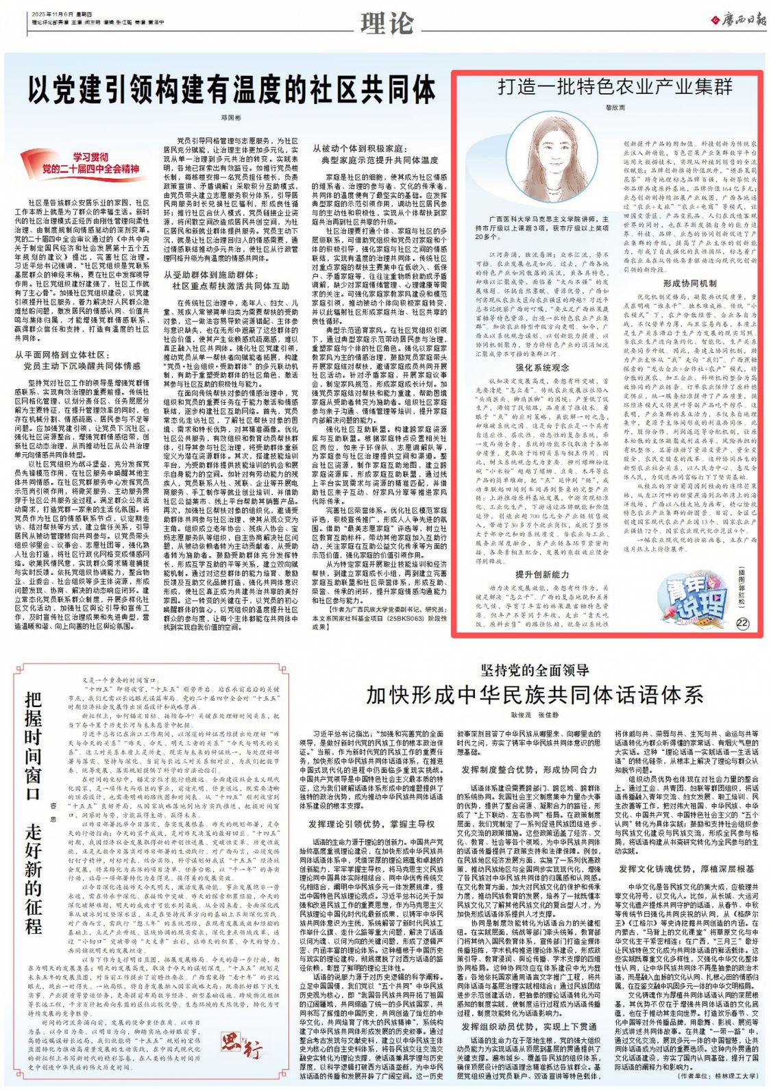黎欣雨:广西医科大学马克思主义学院讲师,主持市厅级以上课题3项,获市厅级以上奖项20多个。