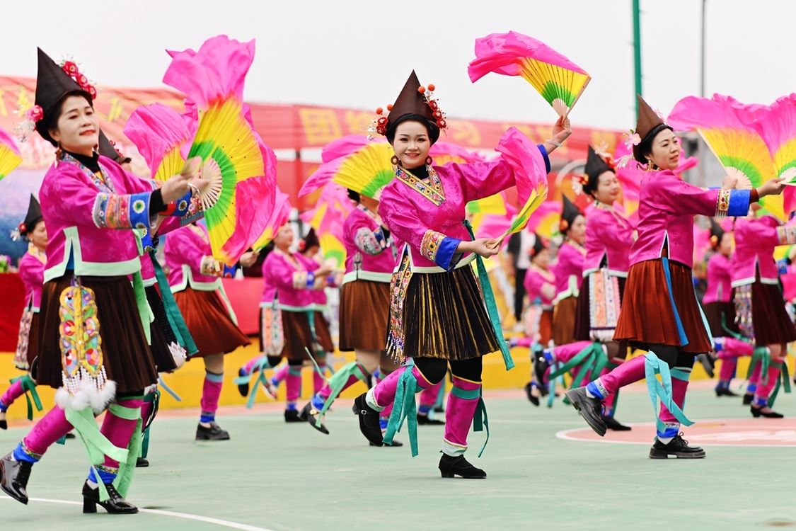 在融水拱洞乡培基村,各族群众齐聚,用欢快旋律奏响民族团结交融乐章。通讯员 兰堃 摄