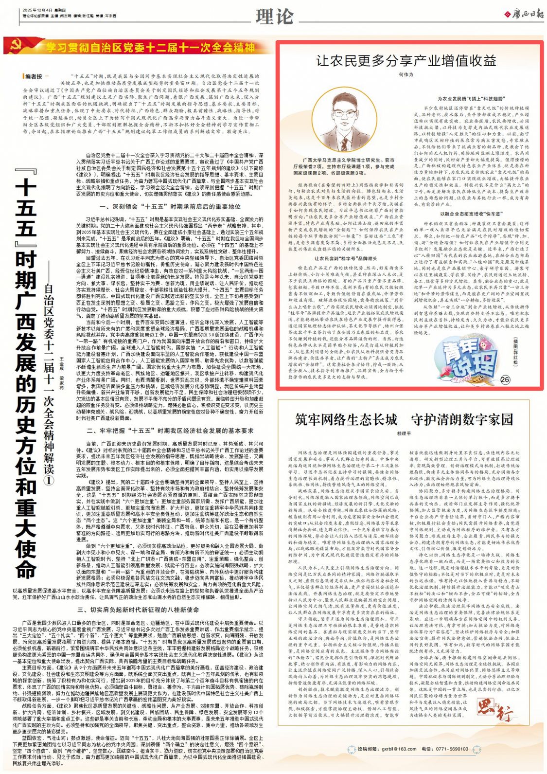 从依赖“一亩三分地”到全产业链增收,从传统耕作到智慧种养赚大钱,实现这些转变并不容易。唯有把农民利益放在首位,持续发力、久久为功,才能让农民更多地分享产业增值收益,让和美乡村画卷在八桂大地上越绘越美。