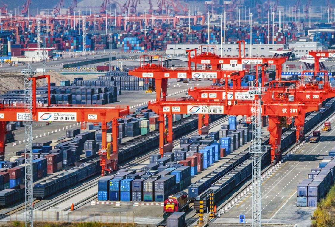 北部湾港钦州自动化集装箱码头,货物装卸作业一派繁忙。记者 周军 摄