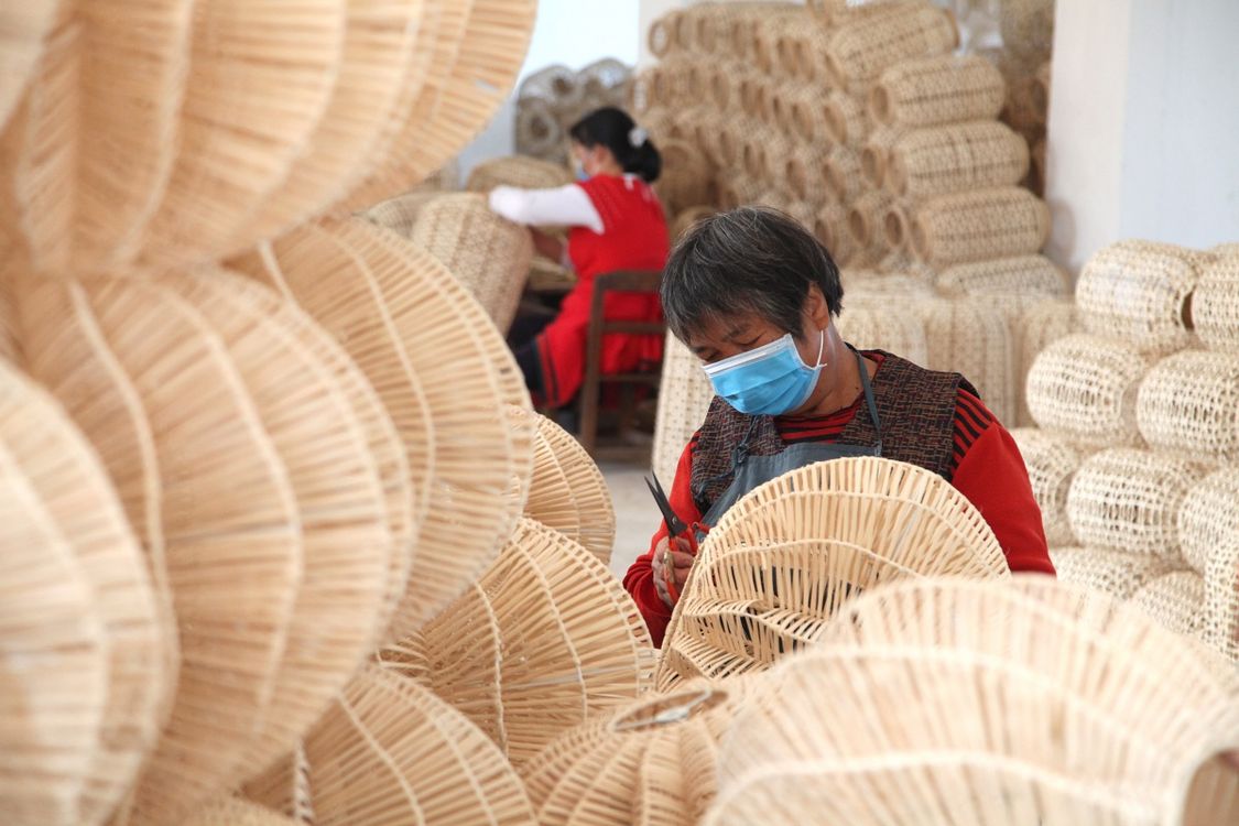 在贵港平南县就业帮扶车间,脱贫群众靠手艺增收致富,实现家门口稳就业。通讯员 莫舒华 摄