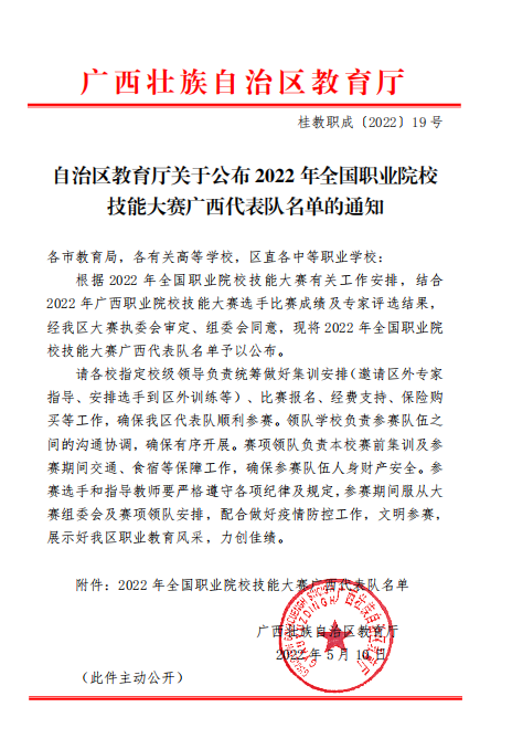 自治区教育厅关于公布2022年全国职业院校技能大赛广西代表队名单的通知