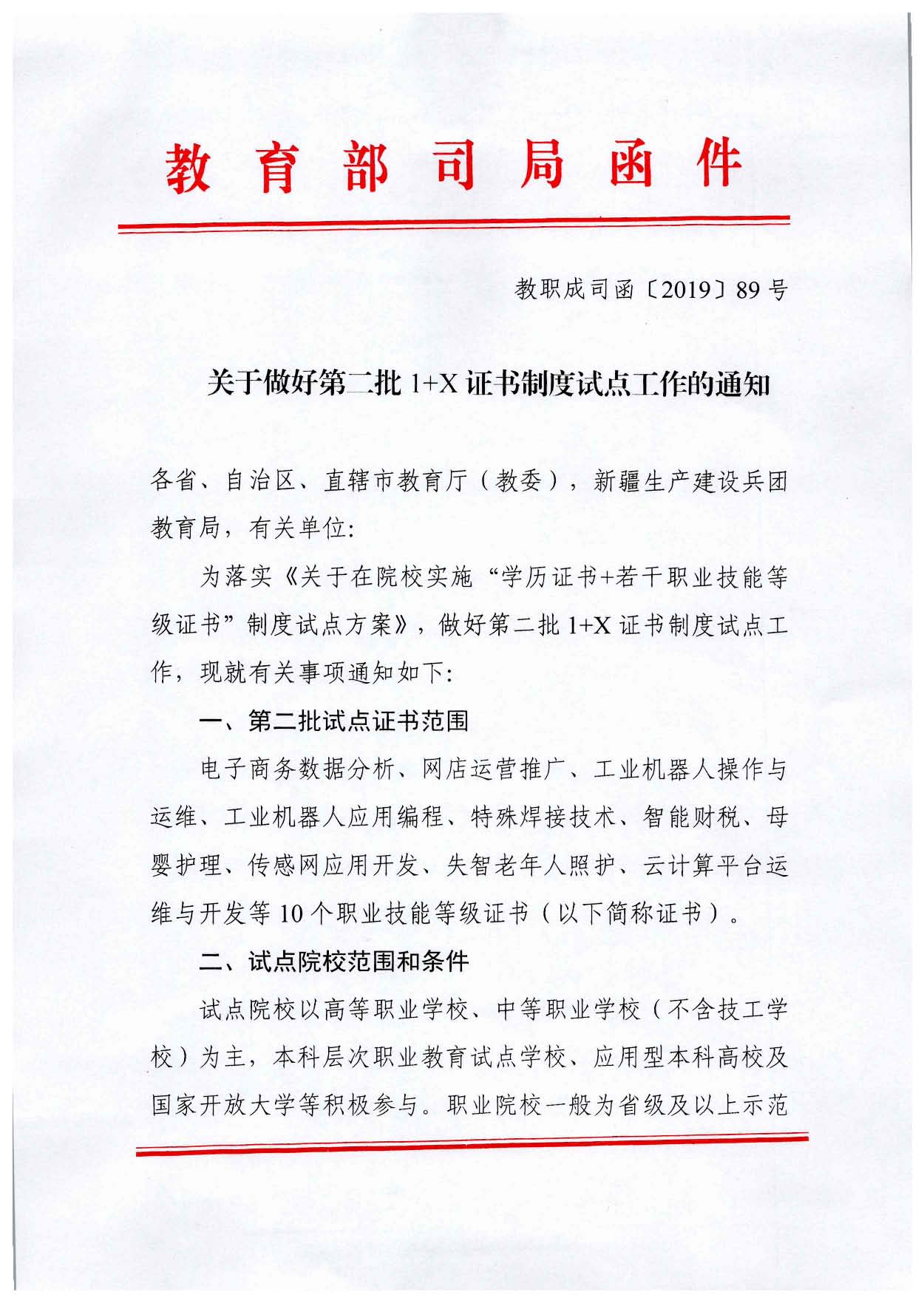 关于做好国家第二批1+X证书制度试点工作的紧急通知