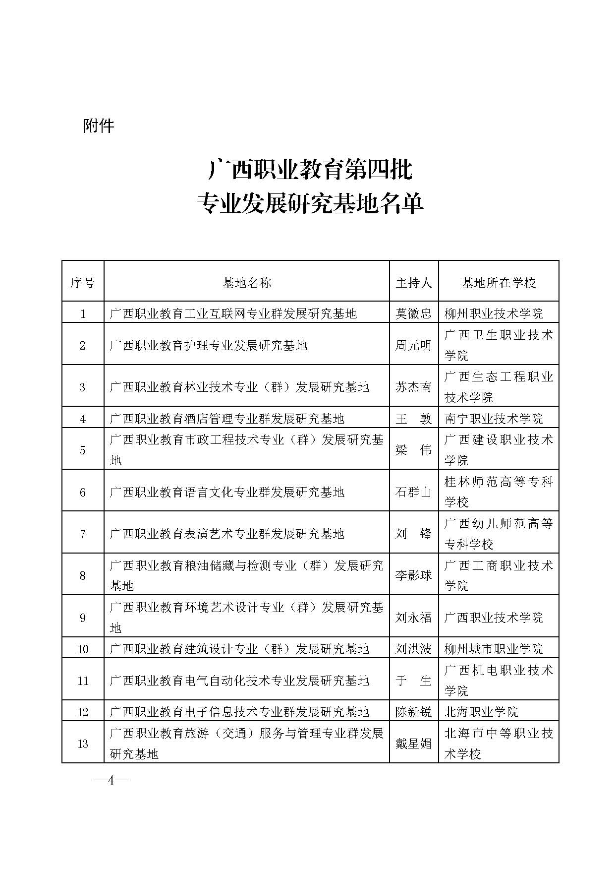 关于公布广西职业教育第四批专业发展研究基地名单的通知