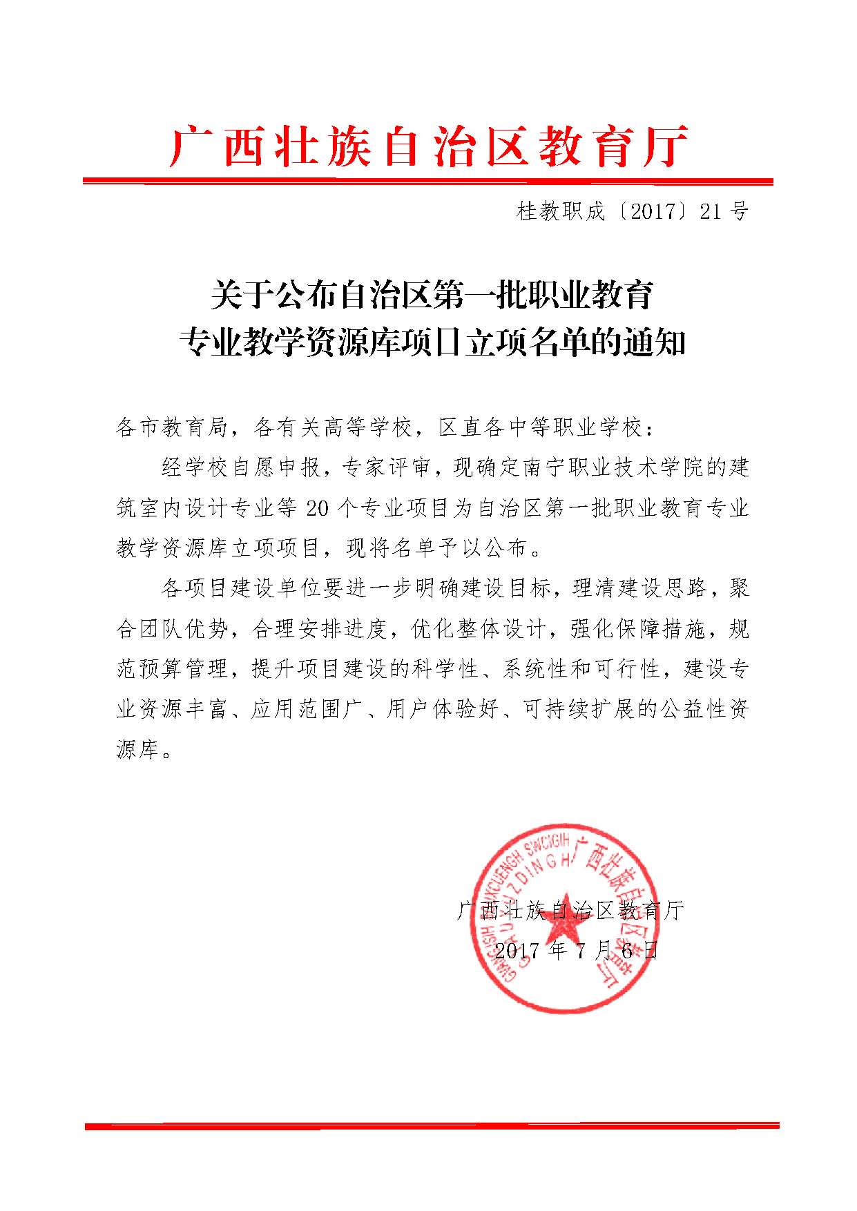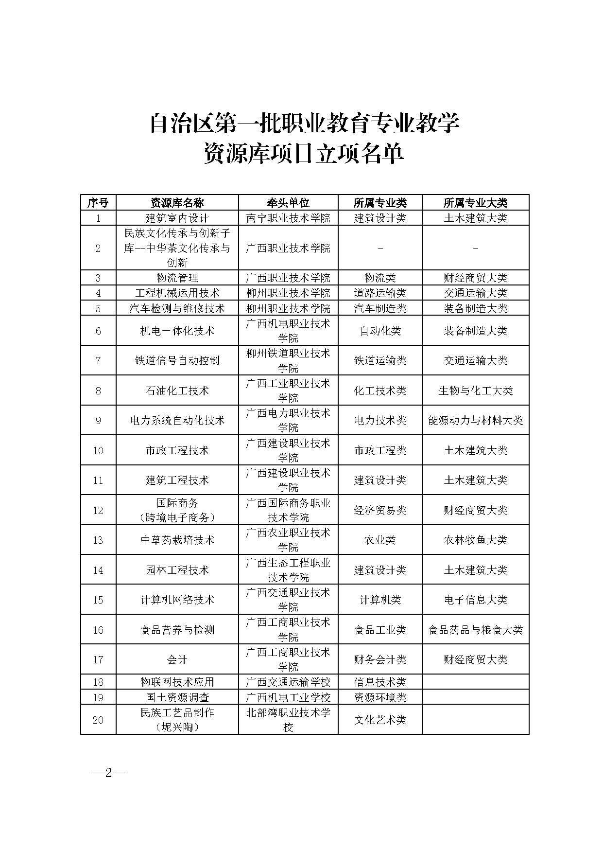 关于公布自治区第一批职业教育专业教学资源库项目立项名单的通知