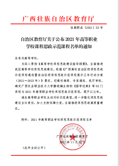 桂教职成〔2021〕55号自治区教育厅关于公布2021年高等职业学校课程思政示范课程名单的通知.pdf