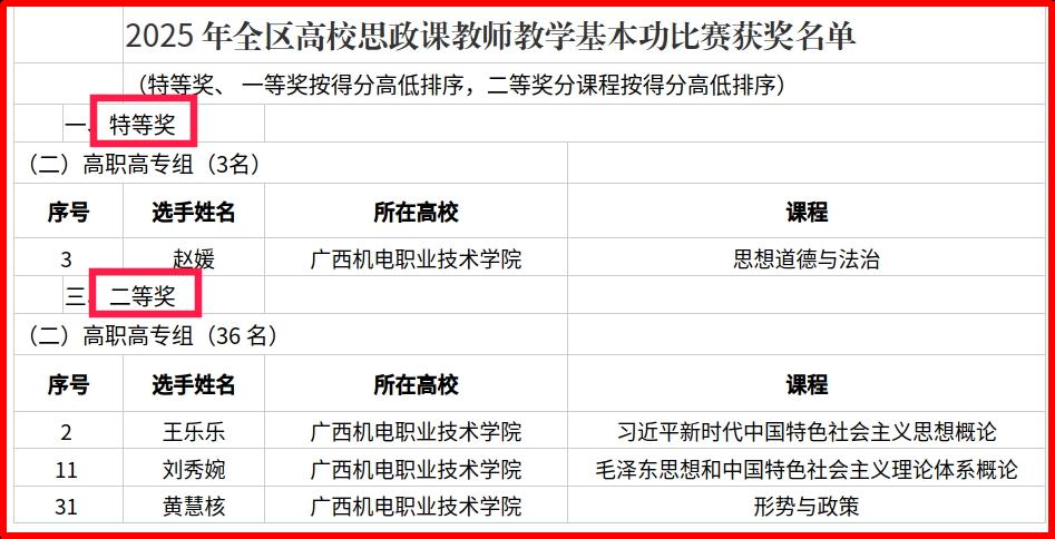 近日,自治区教育厅公布2025年广西高校思政课教师教学基本功比赛获奖名单。taptap官网马克思主义学院选送的四位参赛教师全部获奖,共斩获特等奖1项、二等奖3项。