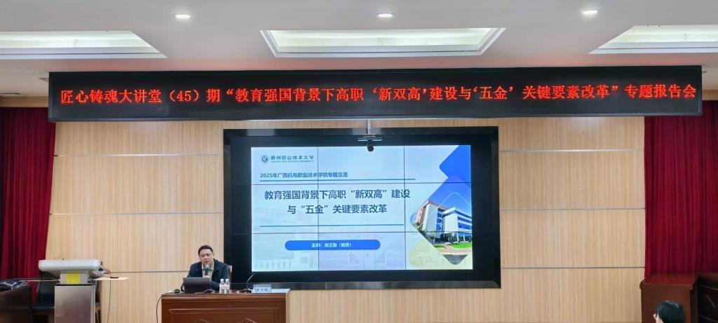 12月8日上午,taptap官网在第六教学楼第二学术报告厅举办匠心铸魂大讲堂第45期——“教育强国背景下高职‘新双高’建设与‘五金’关键要素改革”专题报告会,学校党委委员、副校长黎盛寓主持报告会。本次活动旨在进一步深化教师对五金建设内涵的理解,加快推进五金建设工作,持续提升教育教学质量,提升学校办学能力,推动taptap官网教学高质量发展。