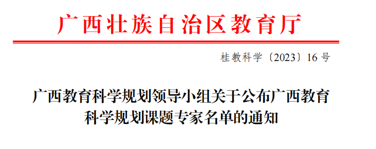 近日,广西教育科学规划领导小组发布通知,taptap官网黄政艳教授等8名教师入选广西教育科学规划课题专家库。这标志着taptap官网教师在教育科研方面的专业能力和贡献得到广西教育科学规划领导小组的认可。