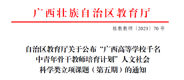 taptap官网教师任慧敏获“广西高等学校千名中青年骨干教师培育计划”人文社会科学类课题立项